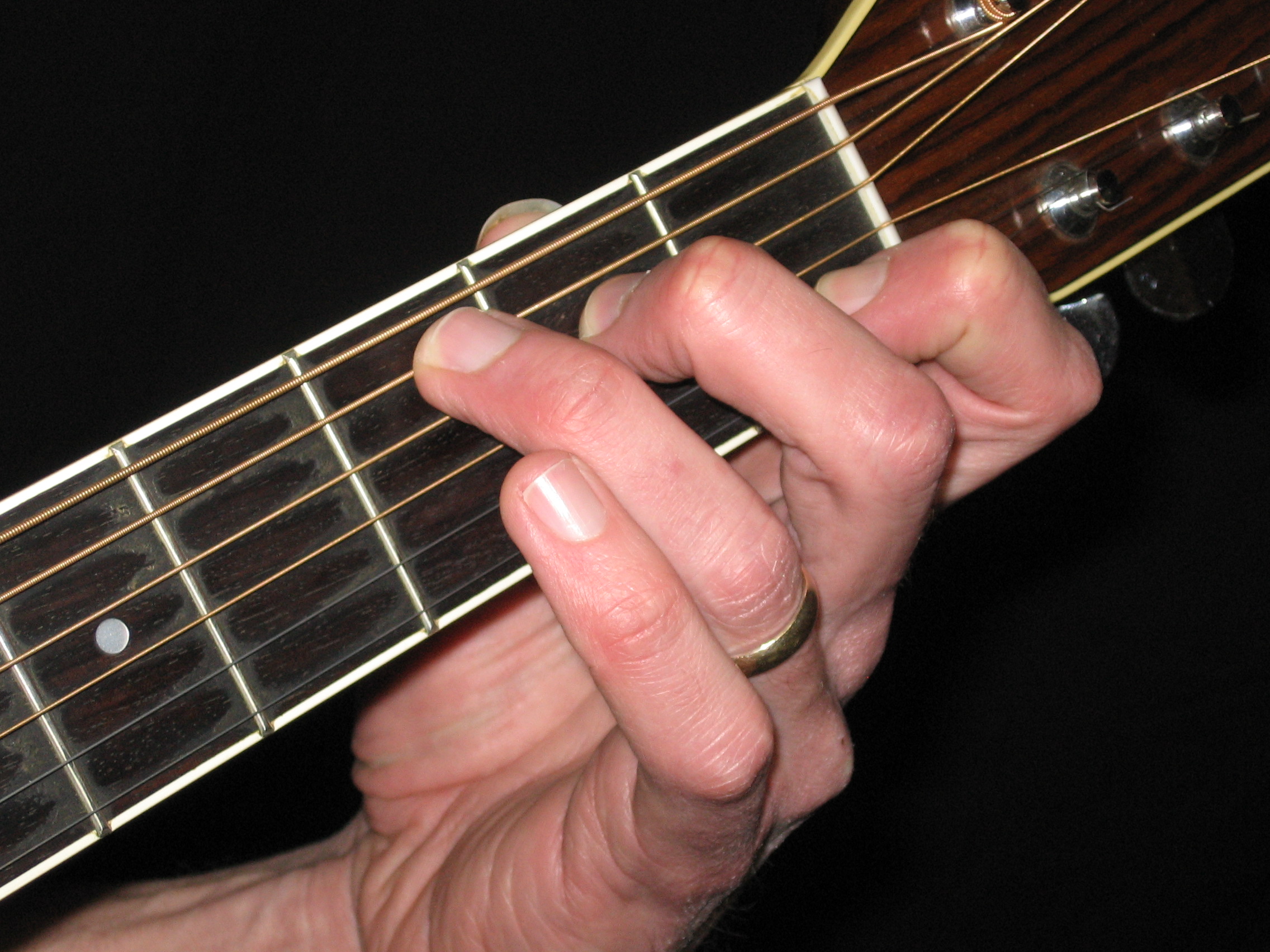 Now, with the fret hand fingers moved up close to the fret wires: